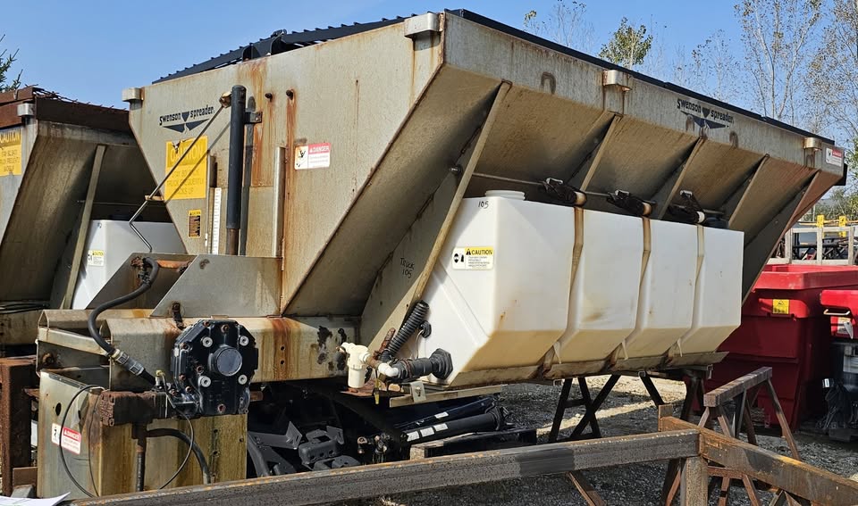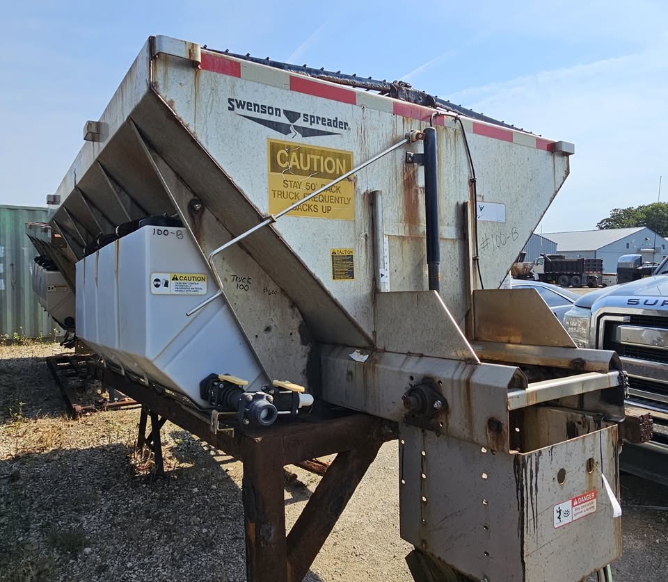 October 8, 2025 STE has multiple 5 yrd Swenson Stainless V-Hopper Salt Spreaders available. 10ft long x 50” overall height x 84” wide at top 5 cu. yrd. Swenson Stainless Hydraulic V-Hopper Salt Spreader With spinner assembly, top screensTwo pre-wet tanks As is condition (need to be greased, oiled & maintenance done) We can load onto your truck or trailer STEAlmont, MI